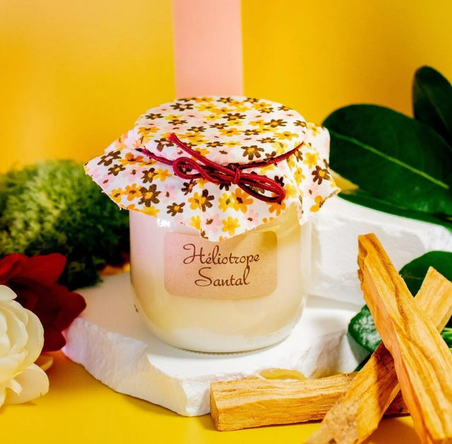 Découvrez la sensualité de notre bougie parfumée Héliotrope Santal de 100g.